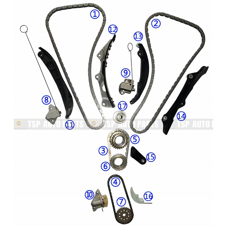 ![]() | INCLUDING: 1,2,3,4,TIMING CHAIN 5,6,7,SPROCKET 8,9,10,TENSIONER 11,12,13,14,15,16,GUIDE 17,WASHER |