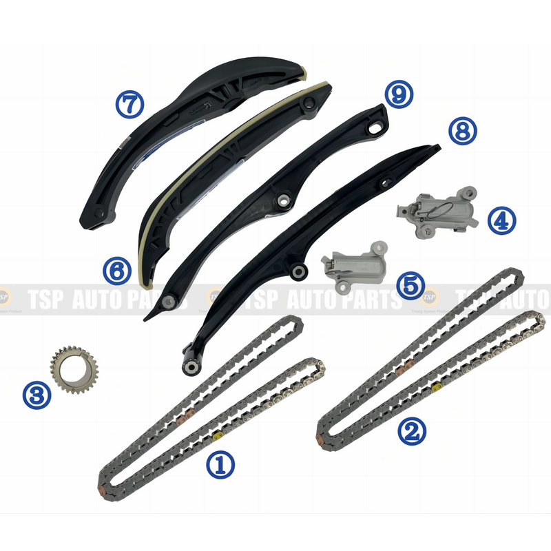 ![]() | INCLUDING: 1,2,TIMING CHAIN 3,CRANK SPROCKET 4,5,TENSIONER 6,7,8,9,GUIDE |